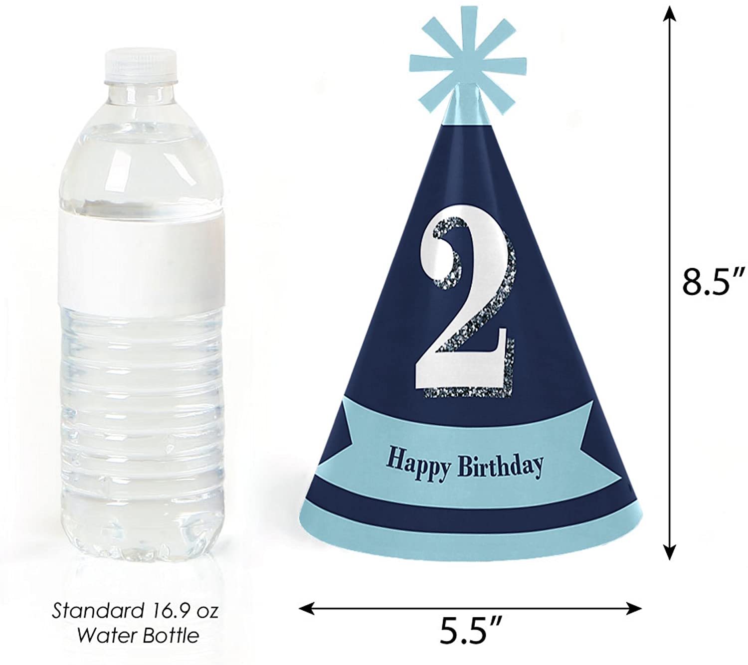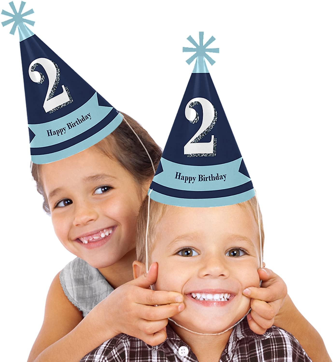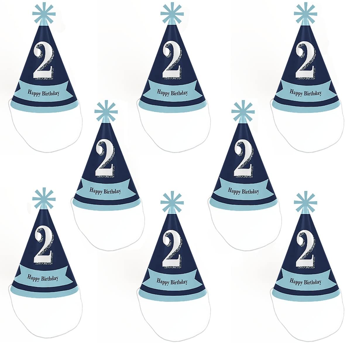 2nd Birthday Boy - Two Much Fun - Cone Happy Second Birthday Party Hats for Kids and Adults - Set of 8 is backordered and will ship as soon as it is back in stock.