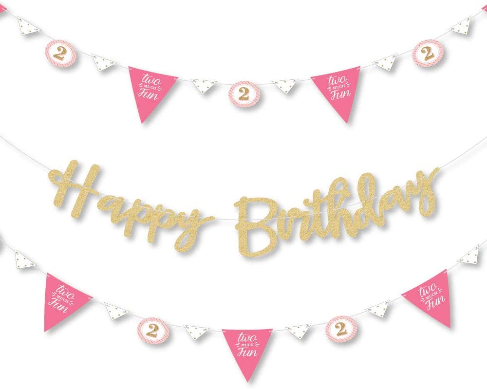 2nd Birthday Girl - Two Much Fun - Second Birthday Party Letter Banner Decoration - 36 Banner Cutouts - No-Mess Real Gold Glitter Happy Birthday Banner Letters
