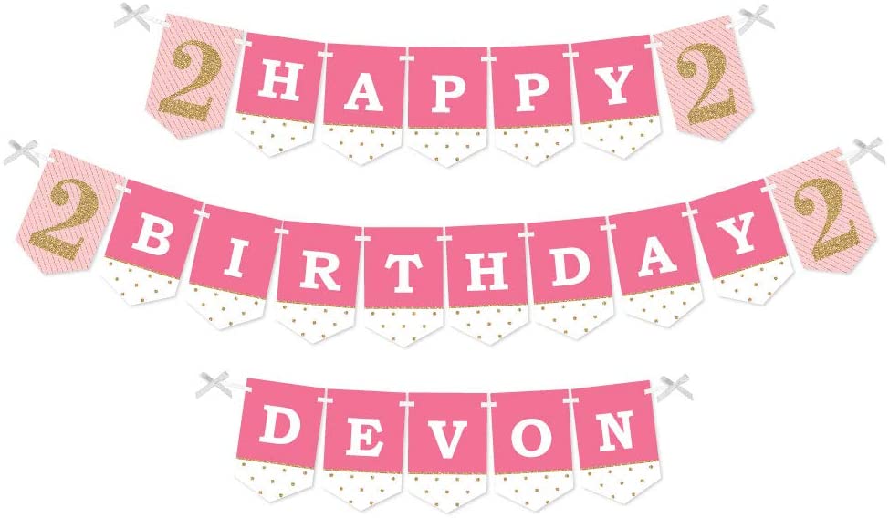 Custom Girl Two Much Fun - 2nd Birthday - Personalized Girl Birthday Party Bunting Banner & Decorations - Happy Birthday Custom Name Banner