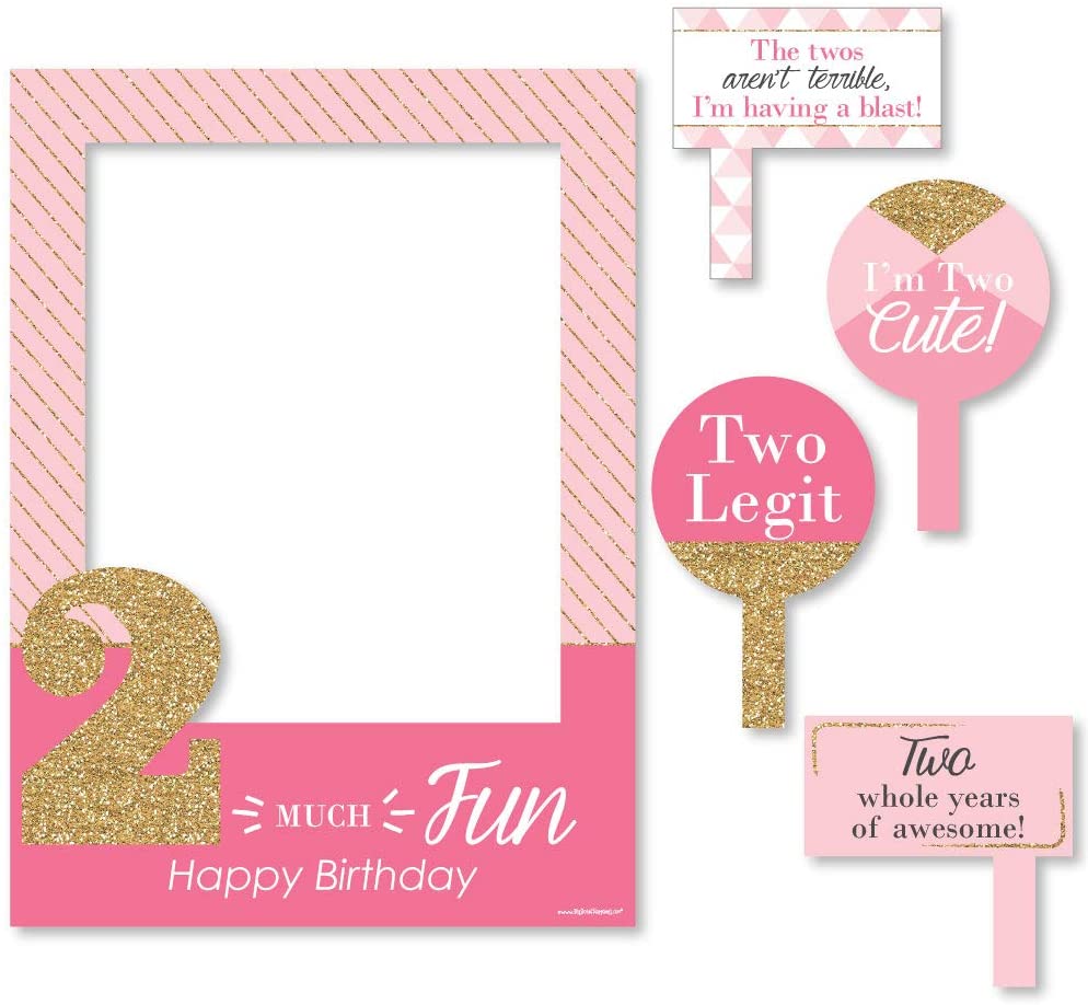 2nd Birthday Girl - Two Much Fun - Birthday Party Selfie Photo Booth Picture Frame & Props