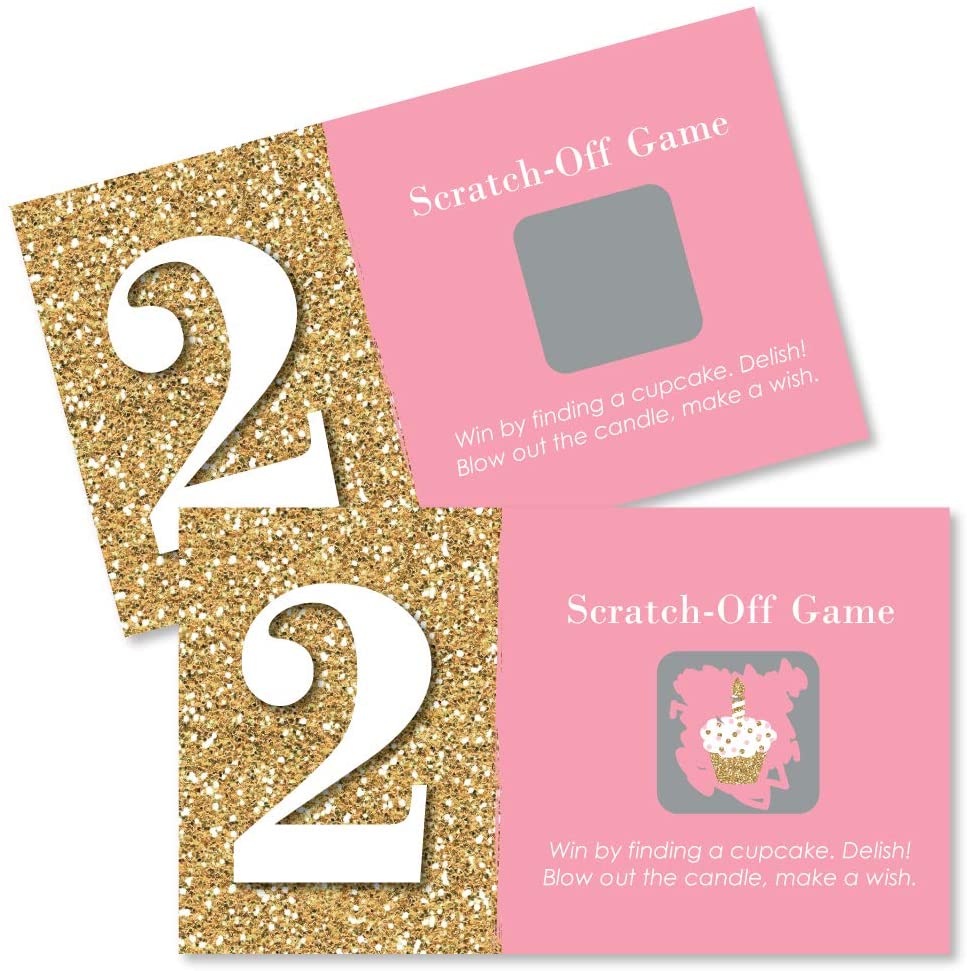 Two Much Fun - Girl - 2nd Birthday Party Game Scratch Off Cards - 22 Count