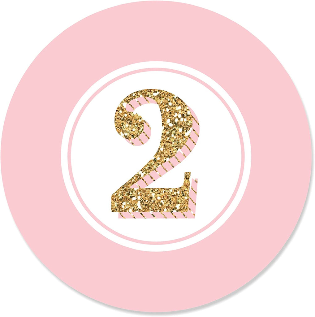 Two Much Fun - Girl - 2nd Birthday Party Circle Sticker Labels - 24 Count