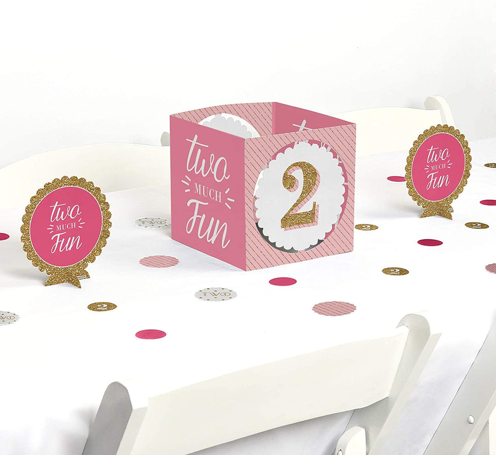 Two Much Fun - Girl - 2nd Birthday Party Centerpiece & Table Decoration Kit