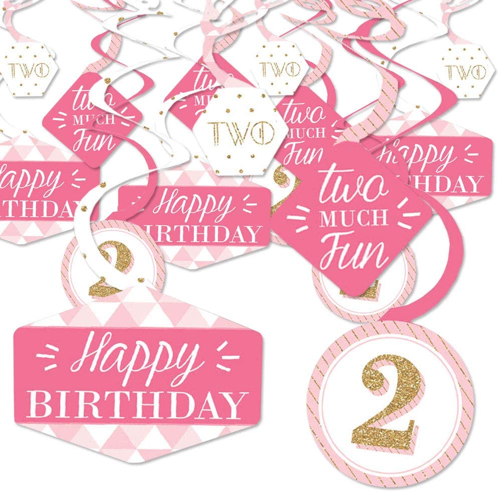 2nd Birthday Girl - Two Much Fun - Second Birthday Party Hanging Decor - Party Decoration Swirls - Set of 40