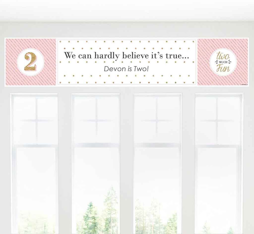 Custom Two Much Fun - 2nd Birthday Girl - Personalized Girl Birthday Party Decorations Party Banner
