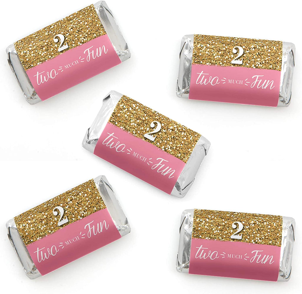 2nd Birthday Girl - Two Much Fun - Mini Candy Bar Wrapper Stickers - Second Birthday Party Small Favors - 40 Count