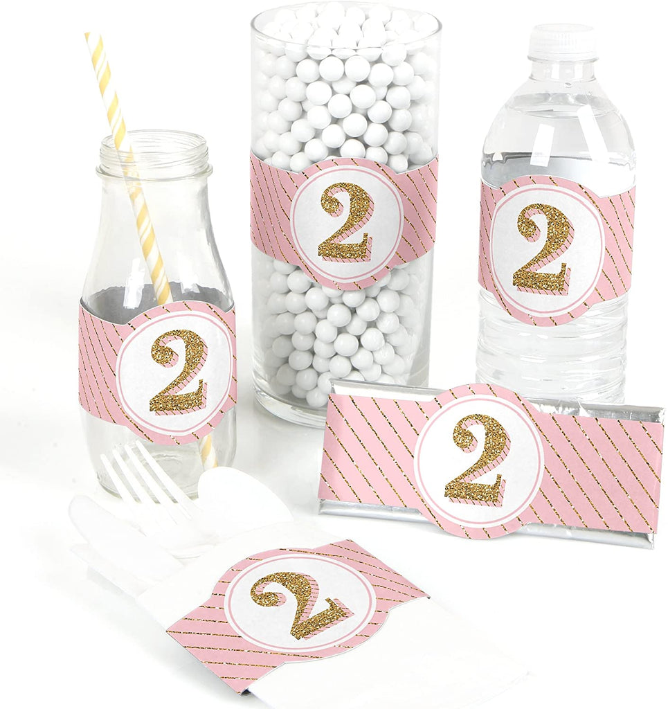 Two Much Fun - Girl - DIY Party Supplies - 2nd Birthday Party DIY Wrapper Favors & Decorations - Set of 15