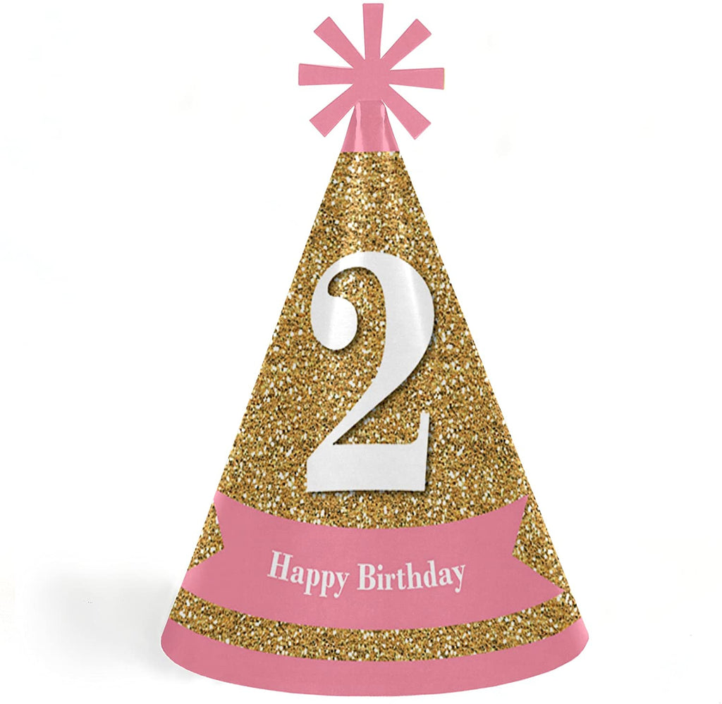 2nd Birthday Girl - Two Much Fun - Cone Happy Second Birthday Party Hats for Kids and Adults - Set of 8