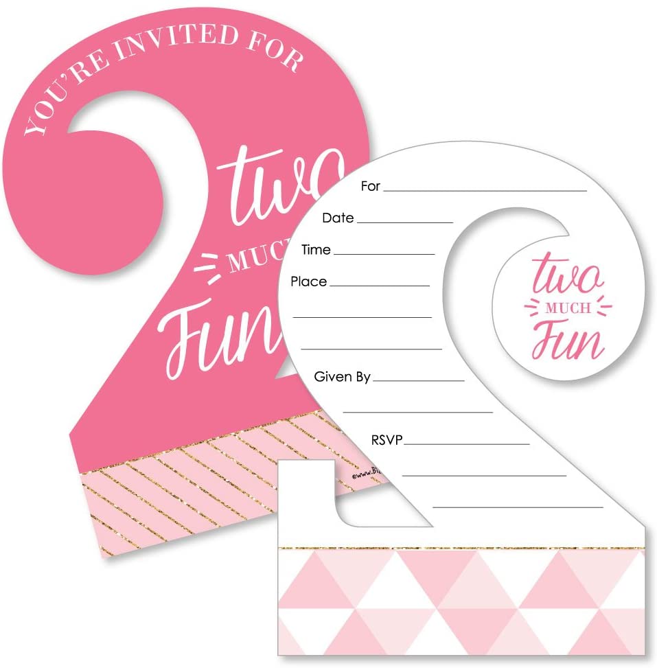 2nd Birthday Girl - Too Much Fun - Shaped Fill-In Invitations - Second Birthday Party Invitation Cards with Envelopes - Set of 12 is backordered and will ship as soon as it is back in stock.