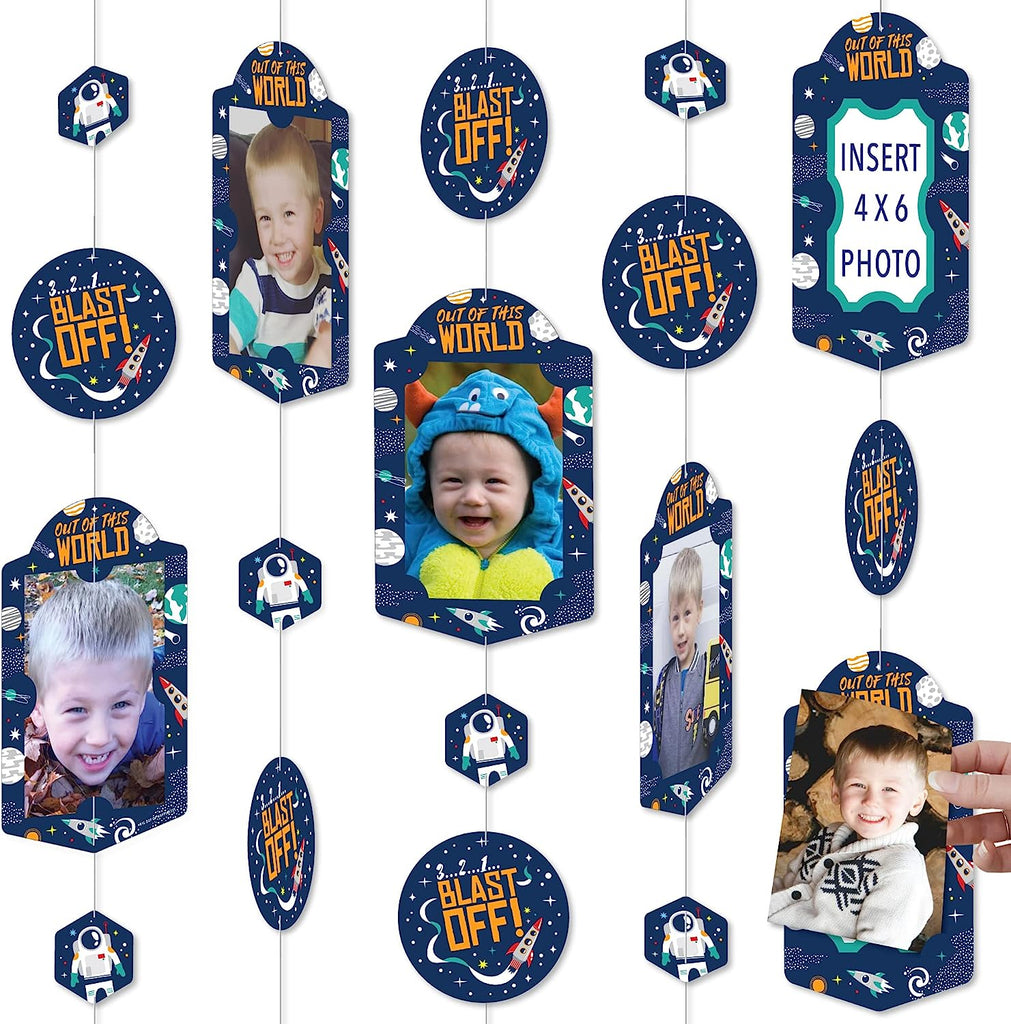 Blast Off to Outer Space - Rocket Ship Baby Shower or Birthday Party Vertical Photo Garland 35 Pieces