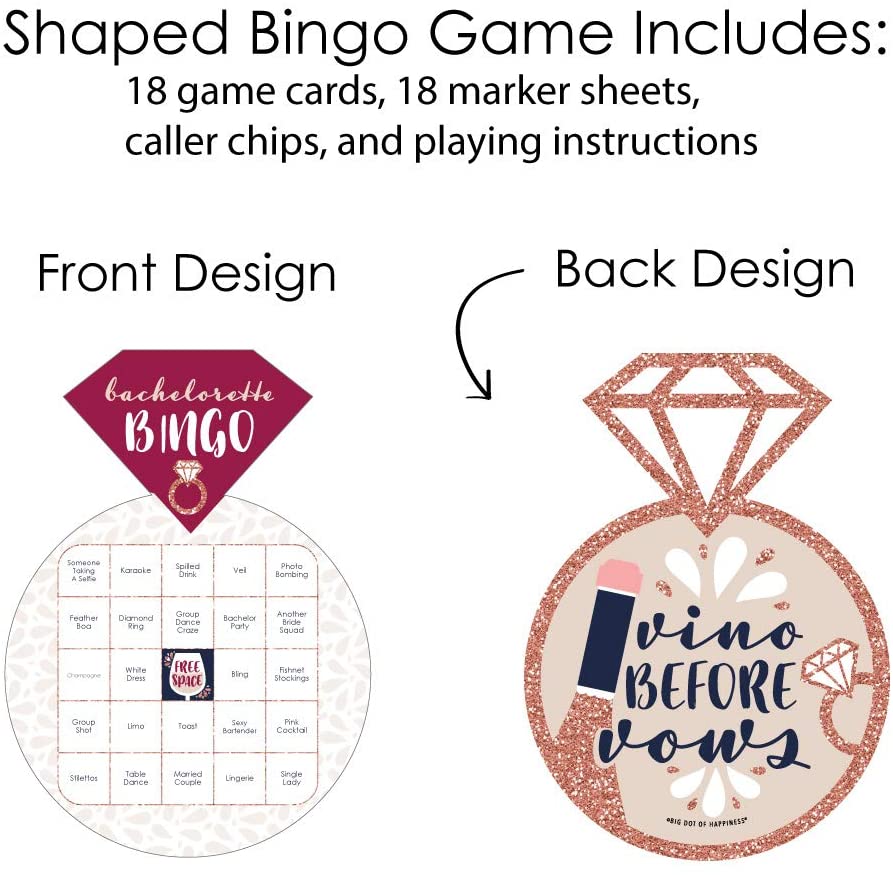 Vino Before Vows - Bar Bingo Cards and Markers - Winery Bridal Shower or Bachelorette Party Shaped Bingo Game - Set of 18 is backordered and will ship as soon as it is back in stock.
