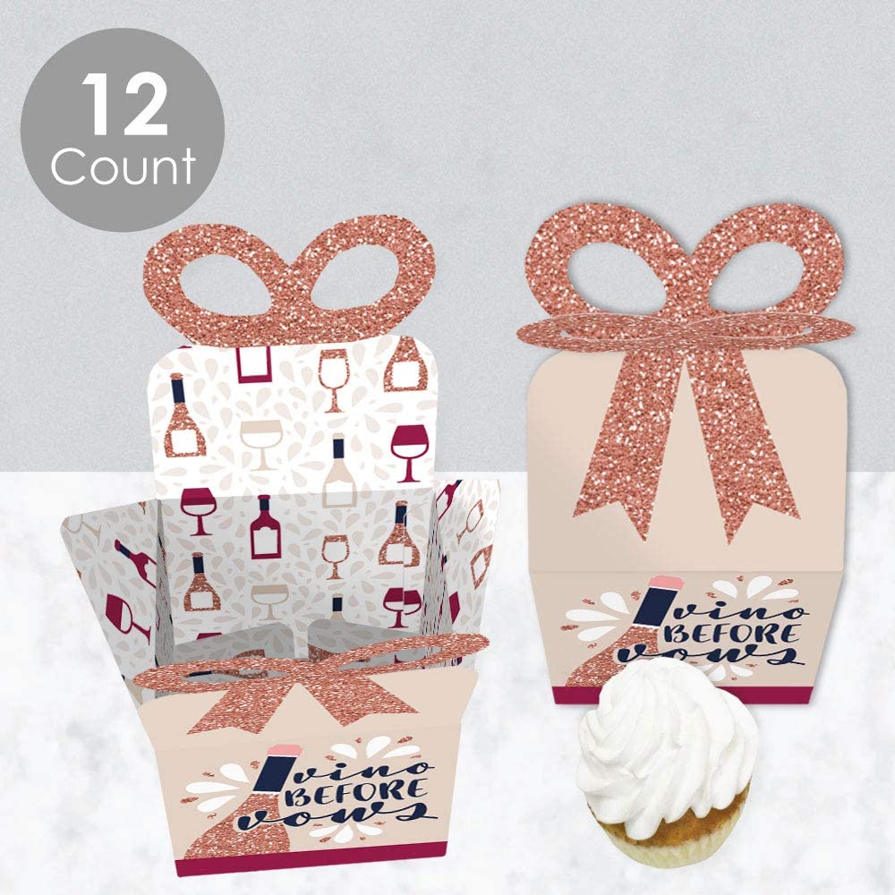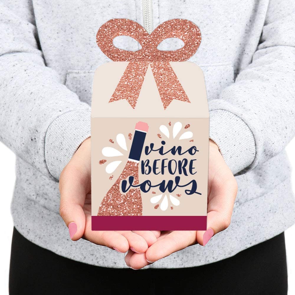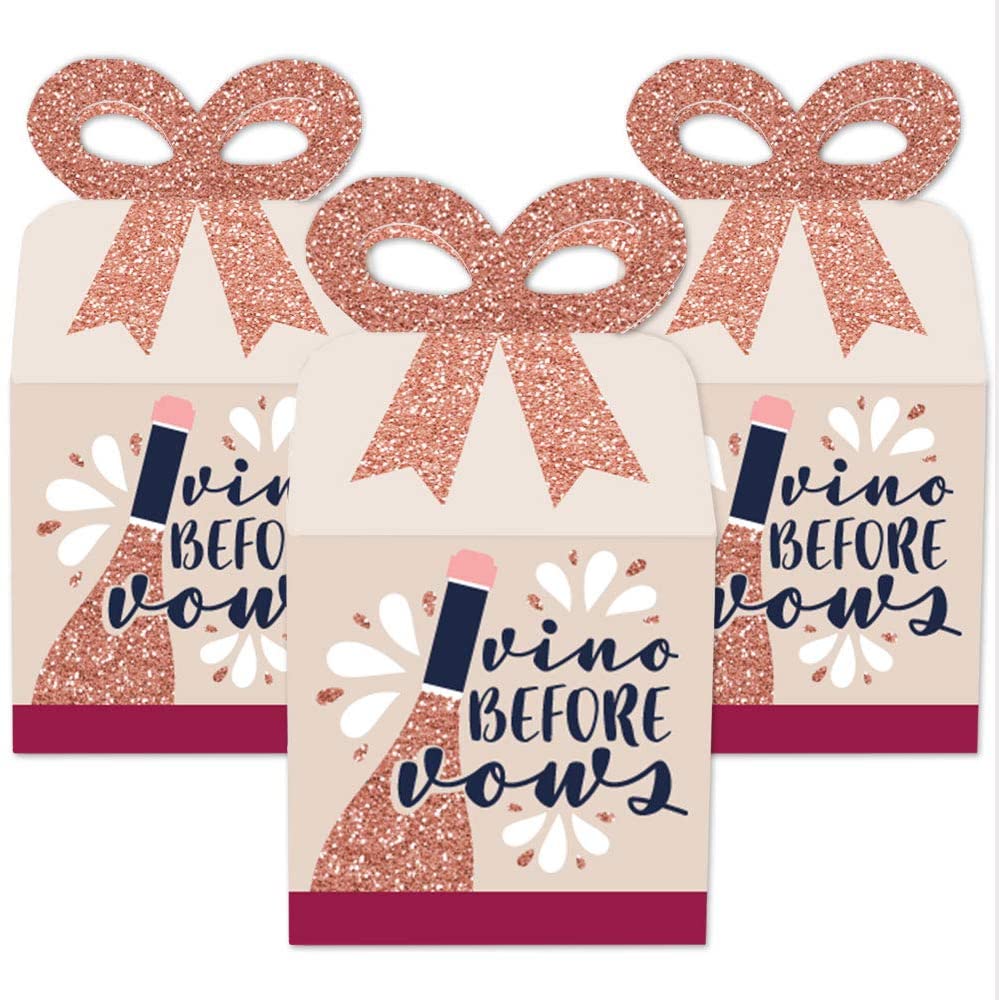 Vino Before Vows - Square Favor Gift Boxes - Winery Bridal Shower or Bachelorette Party Bow Boxes - Set of 12 is backordered and will ship as soon as it is back in stock.