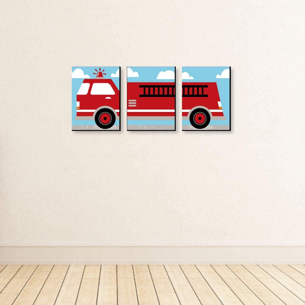 Fired Up Fire Truck - Firefighter Firetruck Nursery Wall Art and Kids Room Decorations - Gift Ideas - 7.5 x 10 inches - Set of 3 Prints is backordered and will ship as soon as it is back in stock.