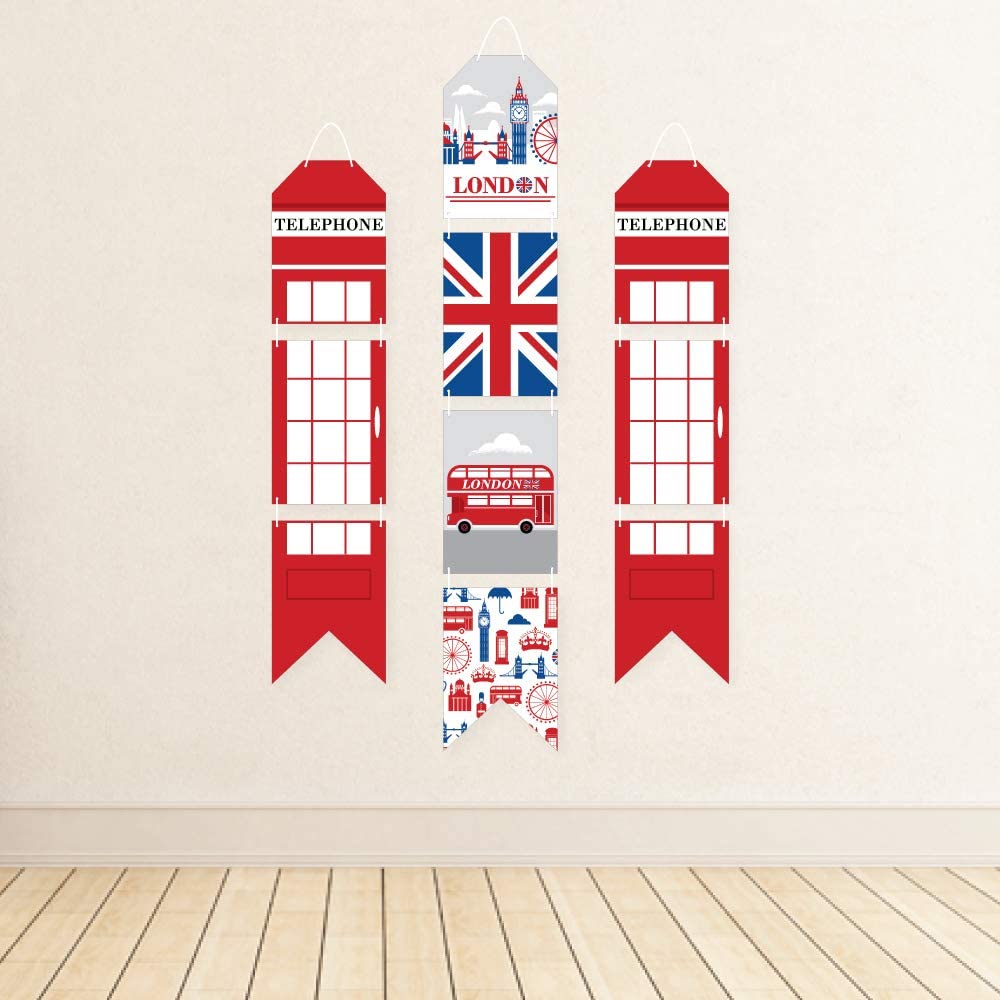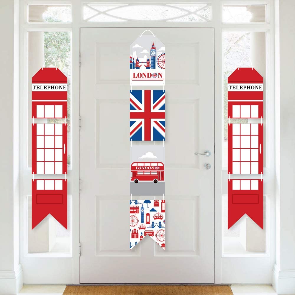 Cheerio, London - British UK Hanging Vertical Paper Door Banners - Baby Shower or Birthday Party Wall Decoration Kit - Indoor Door Decor is backordered and will ship as soon as it is back in stock.