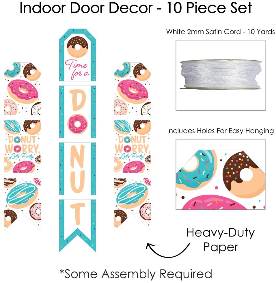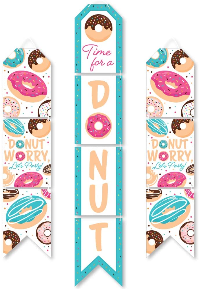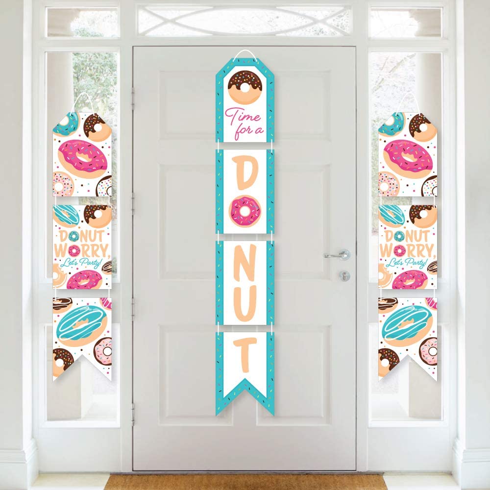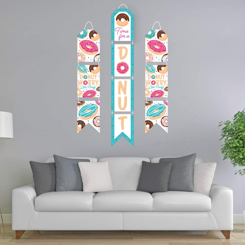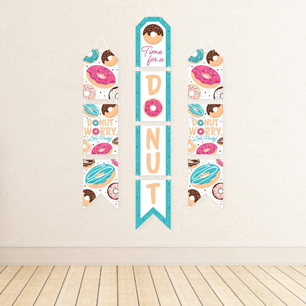 Donut Worry, Let's Party - Hanging Vertical Paper Door Banners - Doughnut Party Wall Decoration Kit - Indoor Door Decor