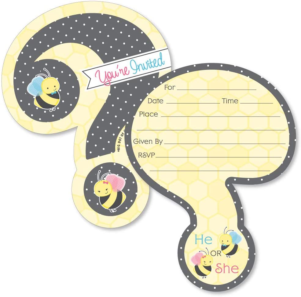 What Will It Bee - Shaped Fill-In Invitations - Gender Reveal Invitation Cards with Envelopes - Set of 12 is backordered and will ship as soon as it is back in stock.