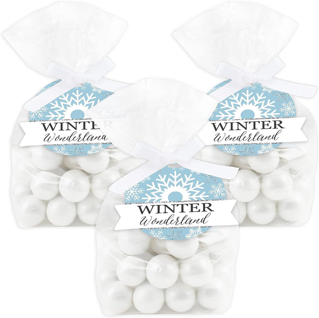 Winter Wonderland - Snowflake Holiday Party and Winter Wedding Clear Goodie Favor Bags - Treat Bags With Tags - Set of 12