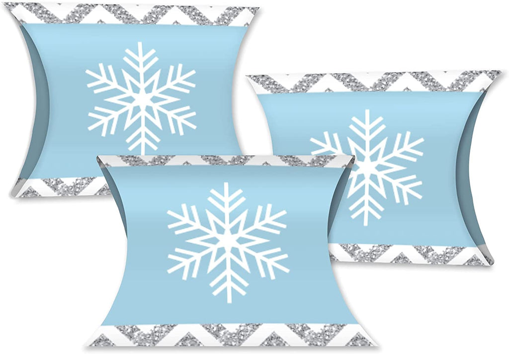 Winter Wonderland - Favor Gift Boxes - Snowflake Holiday Party and Winter Wedding Large Pillow Boxes - Set of 12
