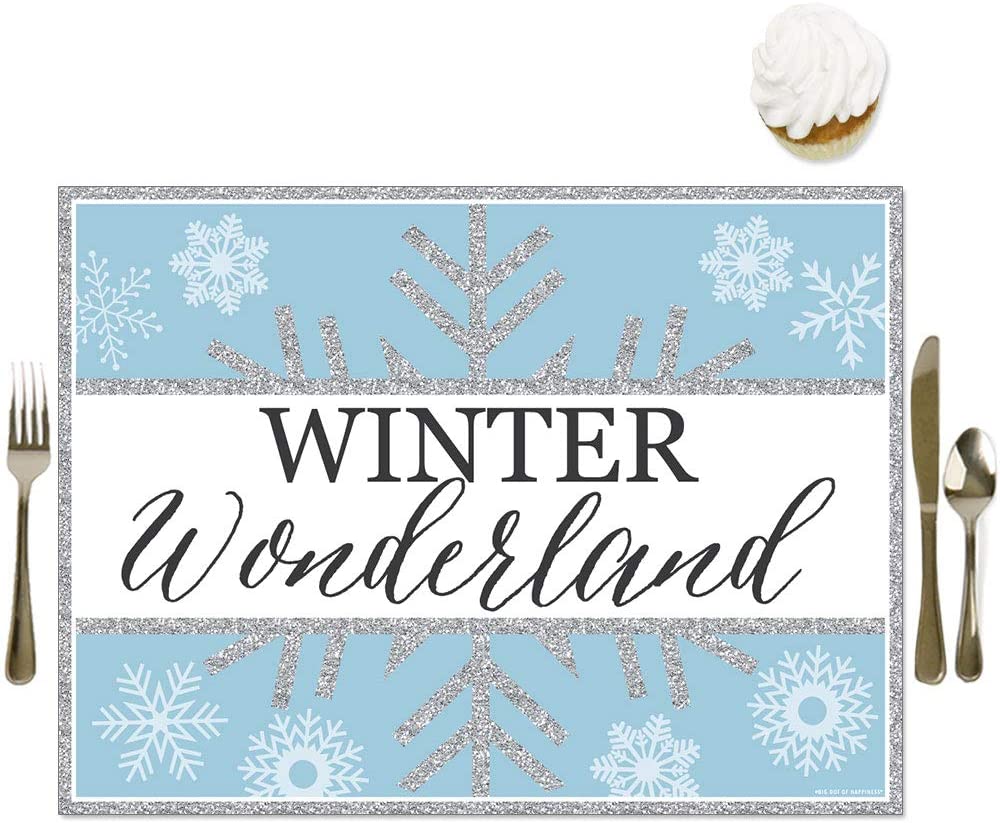 Winter Wonderland - Party Table Decorations - Snowflake Holiday Party and Winter Wedding Placemats - Set of 16