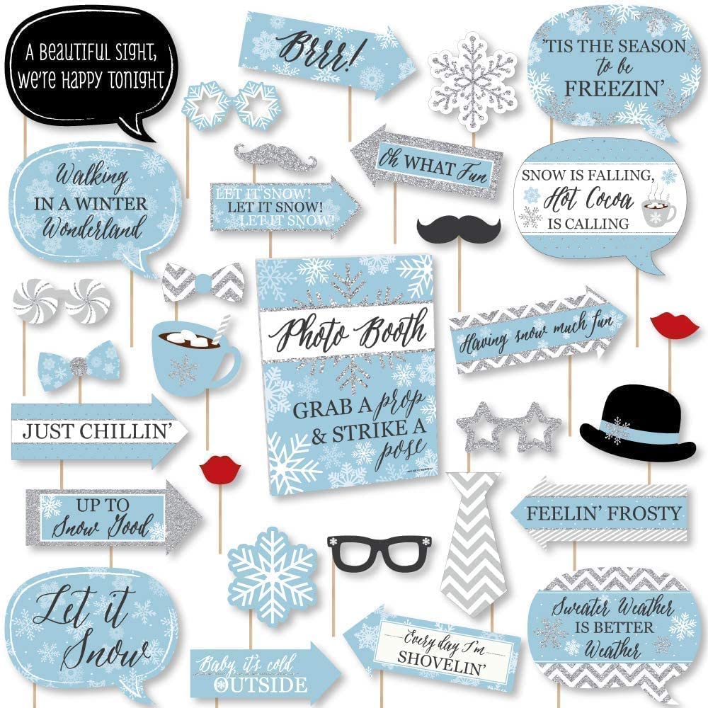 Winter Wonderland - Snowflake Holiday Party and Winter Wedding DIY Photo Booth Decor and Accessories - 30 Photo Props with Photo Booth Sign Party Virtual Bundle