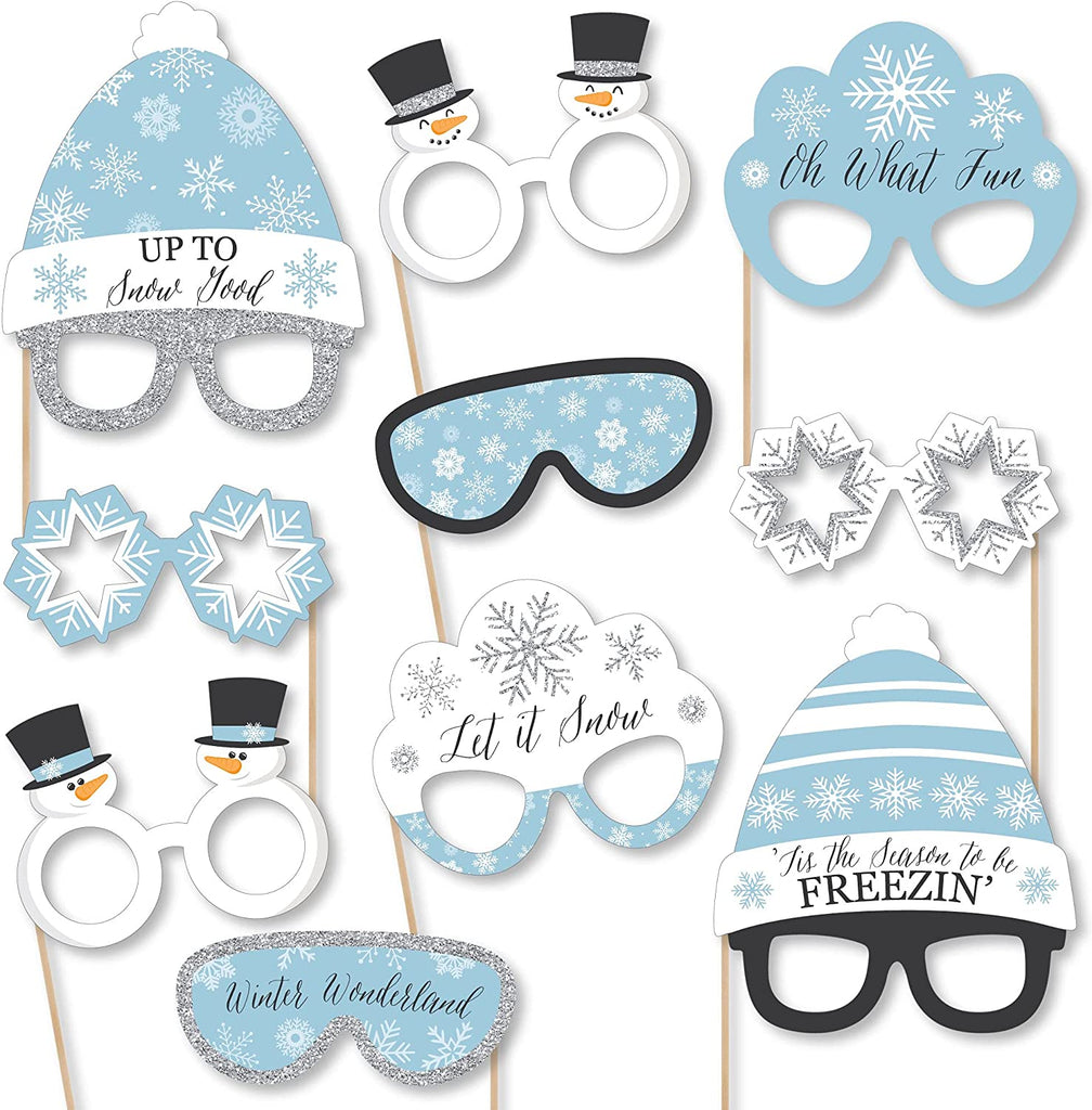 Winter Wonderland Glasses and Headpieces - Paper Card Stock Snowflake Holiday Party and Winter Wedding Photo Booth Props Kit - 10 Count