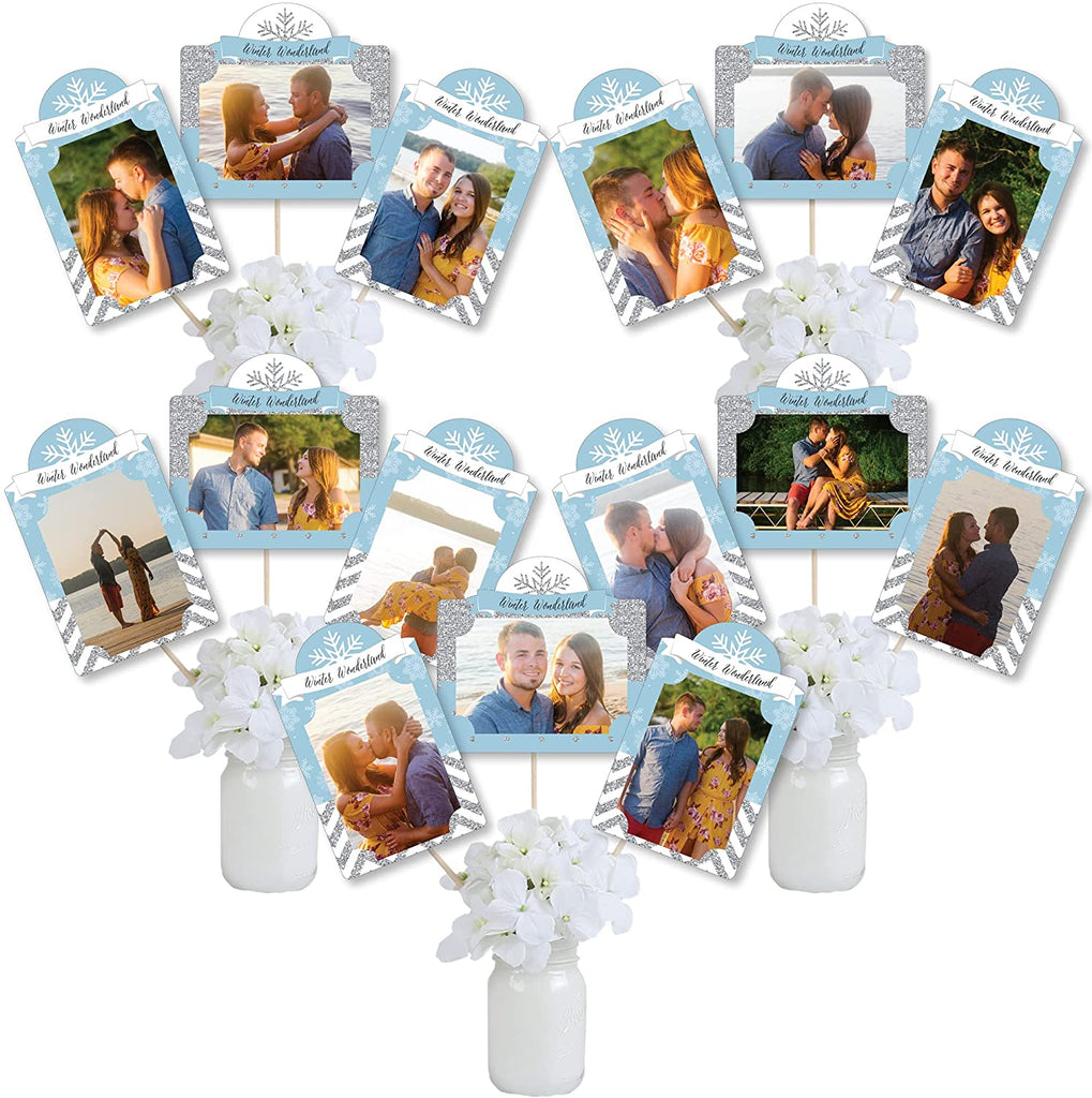 Winter Wonderland - Snowflake Holiday Party and Winter Wedding Picture Centerpiece Sticks - Photo Table Toppers - 15 Pieces