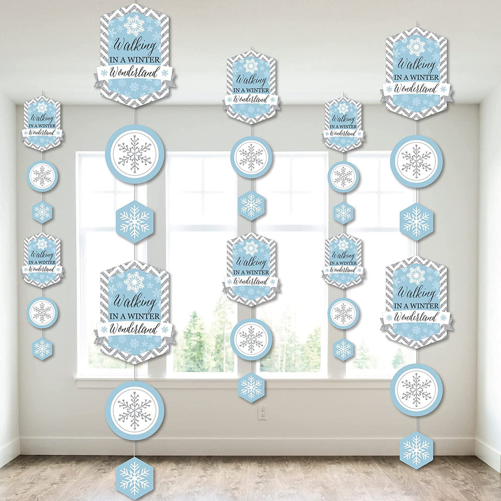 Winter Wonderland - Snowflake Holiday Party and Winter Wedding DIY Dangler Backdrop - Hanging Vertical Decorations - 30 Pieces