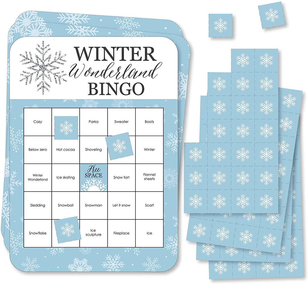 Winter Wonderland - Bingo Cards and Markers - Snowflake Holiday Party and Winter Wedding Bingo Game - Set of 18