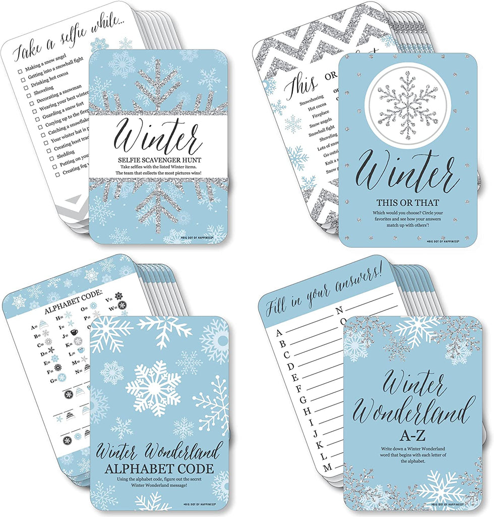 Winter Wonderland - 4 Snowflake Holiday Party and Winter Wedding Games - 10 Cards Each - Gamerific Bundle