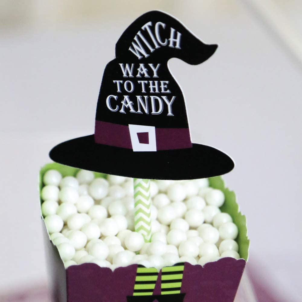 • EASY PARTY DECORATIONS: Happy Halloween straw decor will add a touch of charm to your Halloween, birthday or bachelorette party tables. Happy Halloween party straw decor will also look great at your beverage bar. Use these adorable witch party accessories as straws or swizzle sticks. The paper straws can also be cut in half and used as cupcake picks once the shaped cut out is attached.