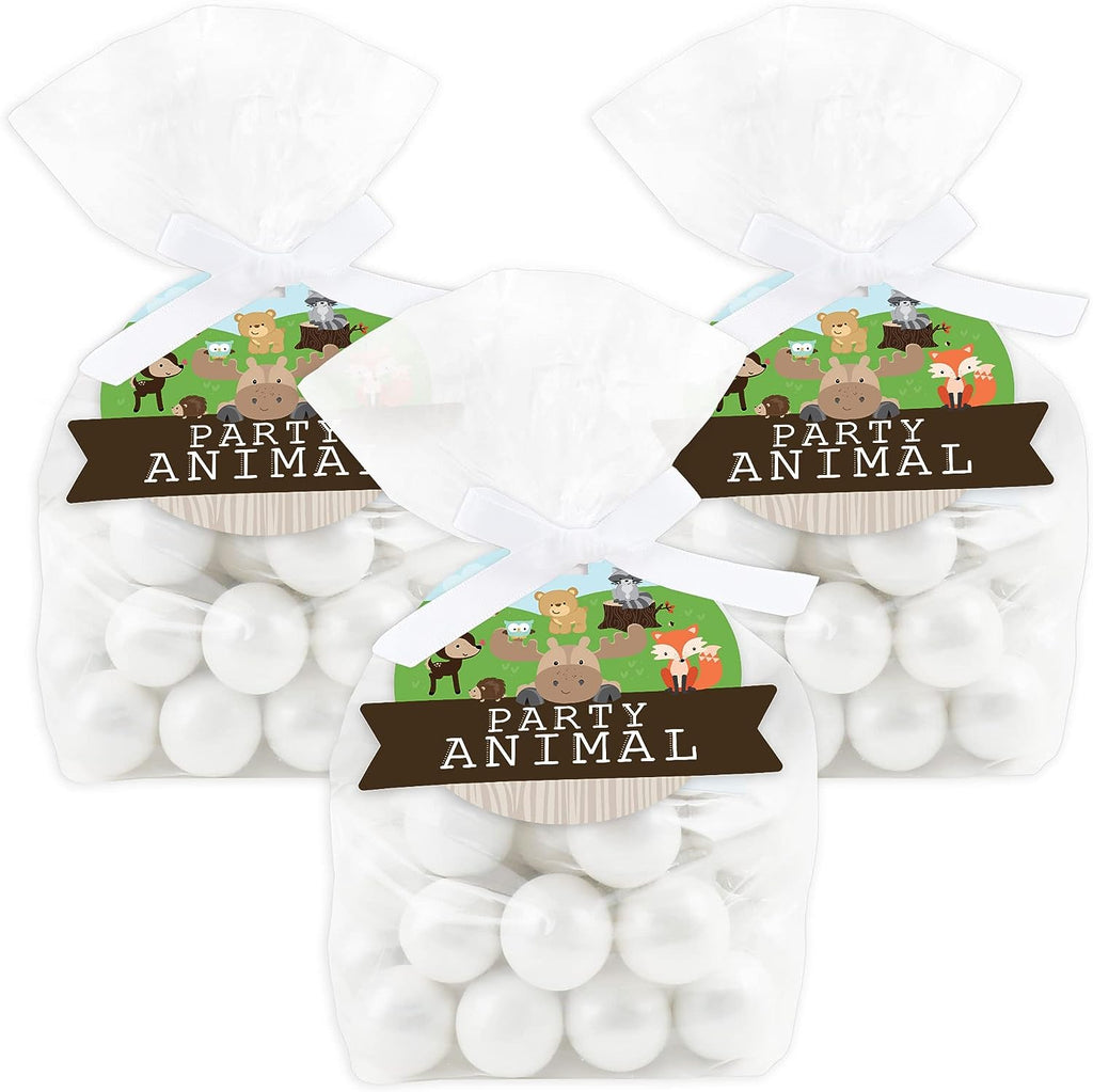 Woodland Creatures - DIY Baby Shower or Birthday Party Clear Goodie Favor Bag Labels - Candy Bags with Toppers - Set of 24