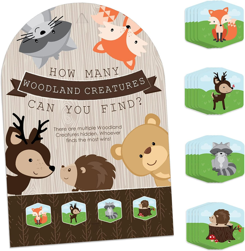 Woodland Creatures - Baby Shower or Birthday Party Scavenger Hunt - 1 Stand and 48 Game Pieces - Hide and Find Game