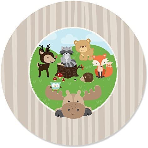 Woodland Creatures - Baby Shower or Birthday Party Circle Sticker Labels - 24 Count