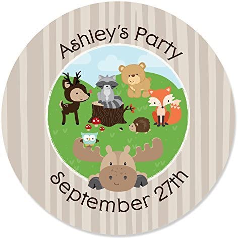 Custom Woodland Creatures - Personalized Baby Shower or Birthday Party Favor Circle Sticker Labels - Set of 24