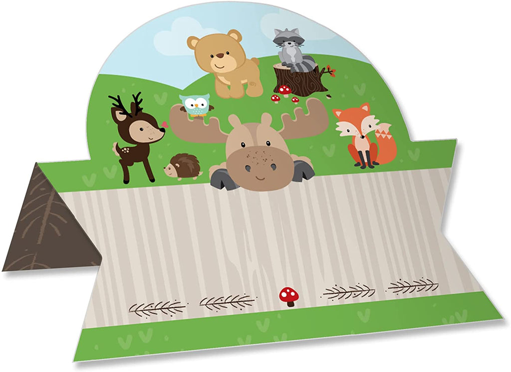 Woodland Creatures - Baby Shower or Birthday Party Tent Buffet Card - Table Setting Name Place Cards - Set of 24
