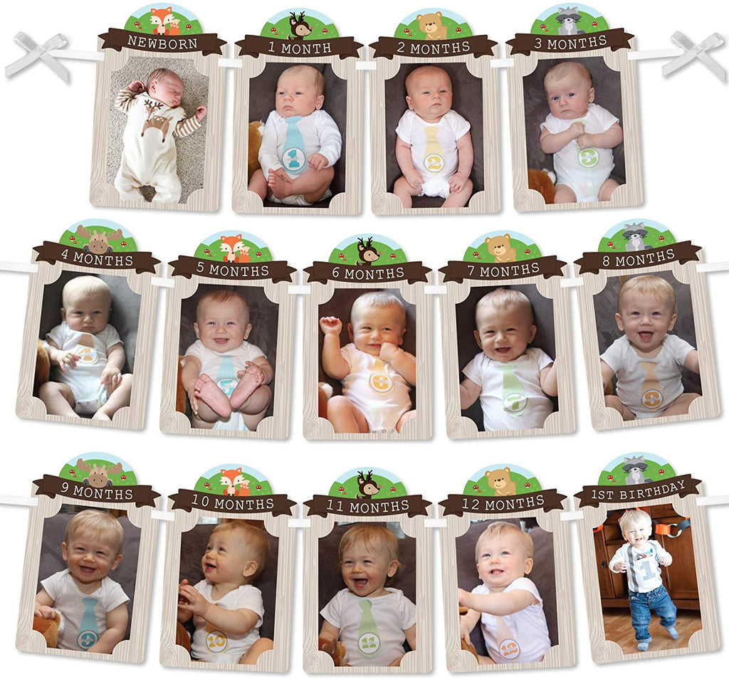 1st Birthday Woodland Creatures - DIY First Birthday Party Decor - 1-12 Monthly Picture Display - Photo Banner