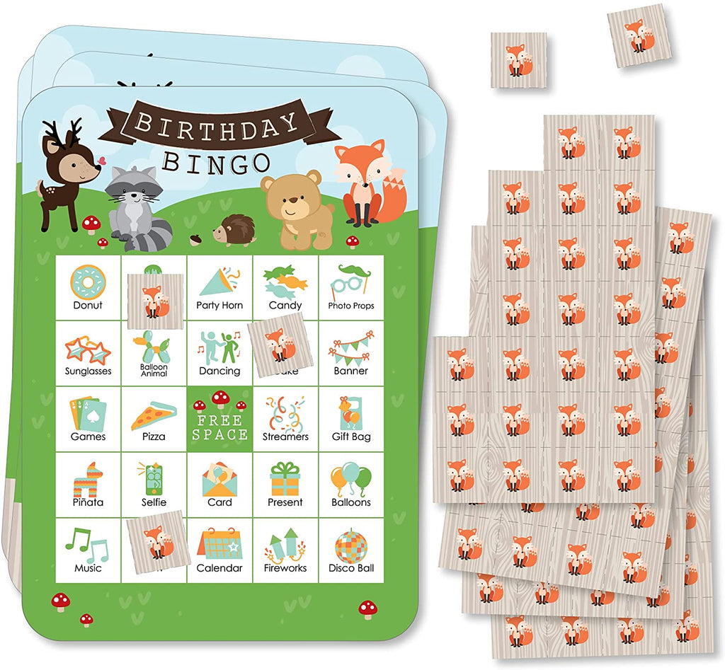 Woodland Creatures - Picture Bingo Cards and Markers - Birthday Party Bingo Game - Set of 18
