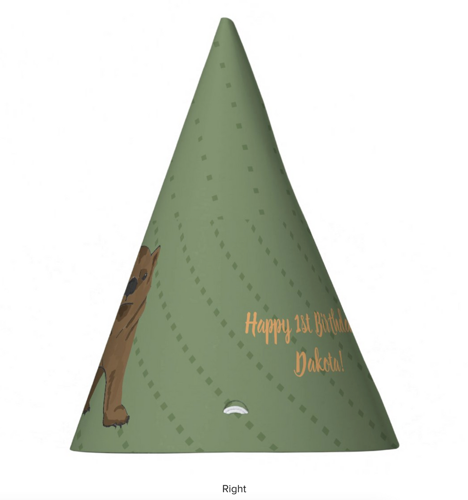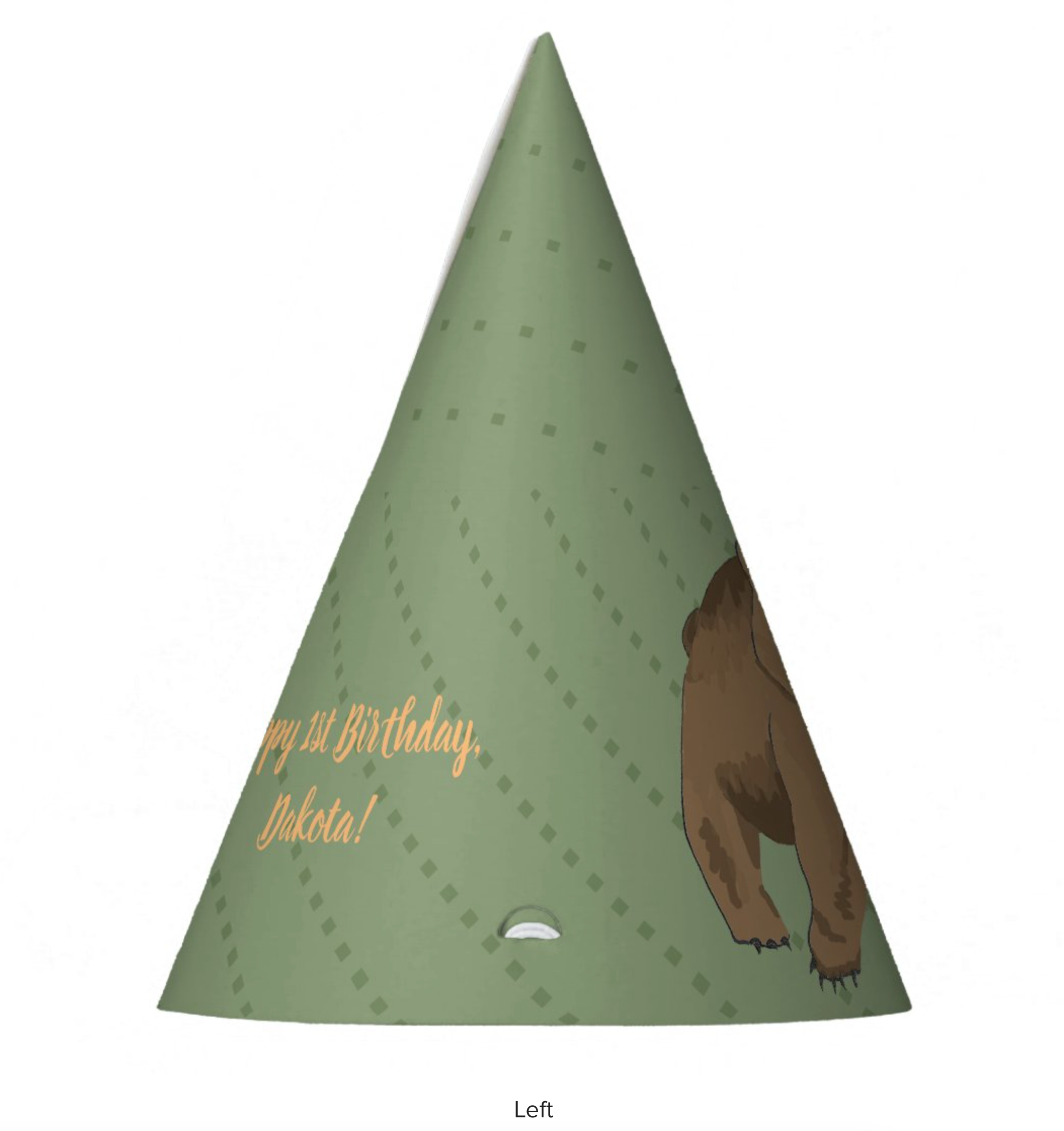 PHA209 Custom Cute Woodland Grizzly Bear Cub Party Hat - Set of 8