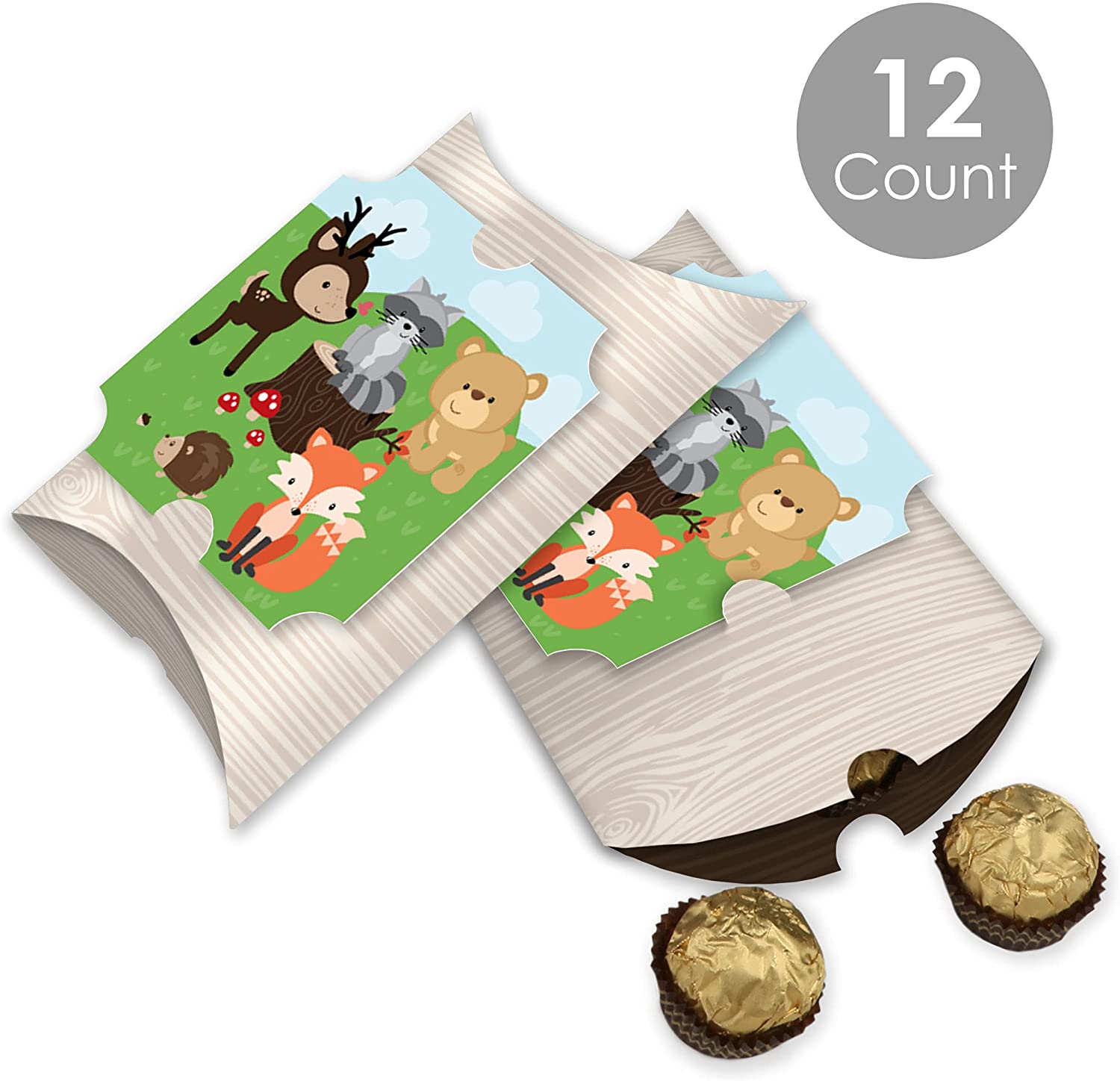 Woodland Creatures - Favor Gift Boxes - Baby Shower or Birthday Party Large Pillow Boxes - Set of 12 is backordered and will ship as soon as it is back in stock.