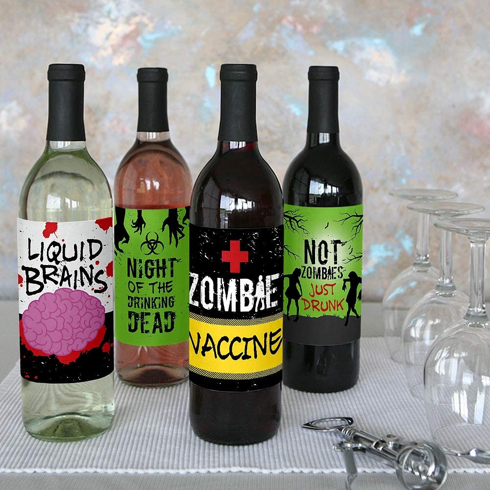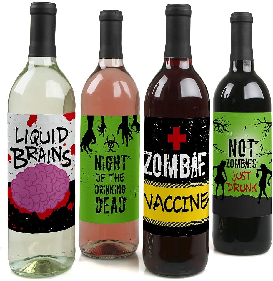 Zombie Zone - Halloween or Birthday Zombie Crawl Party Decorations for Women and Men - Wine Bottle Label Stickers - Set of 4 is backordered and will ship as soon as it is back in stock.