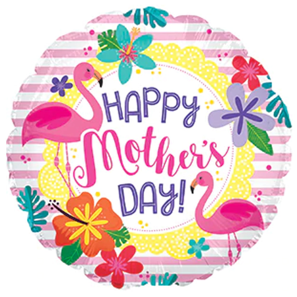 Celebrate the fabulous moms in your life with flair! This 17-inch round foil balloon features a chic flamingo surrounded by tropical florals and a bold “Happy Mother’s Day” message — fun, fashionable, and full of love.
