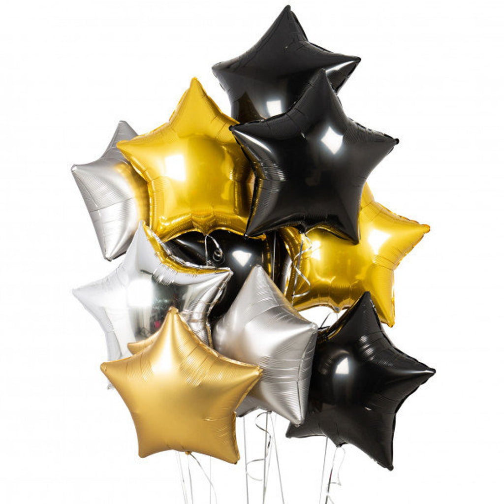 Gold, Silver and Black Stars Bouquet - 10 Balloons - With Helium is backordered and will ship as soon as it is back in stock.