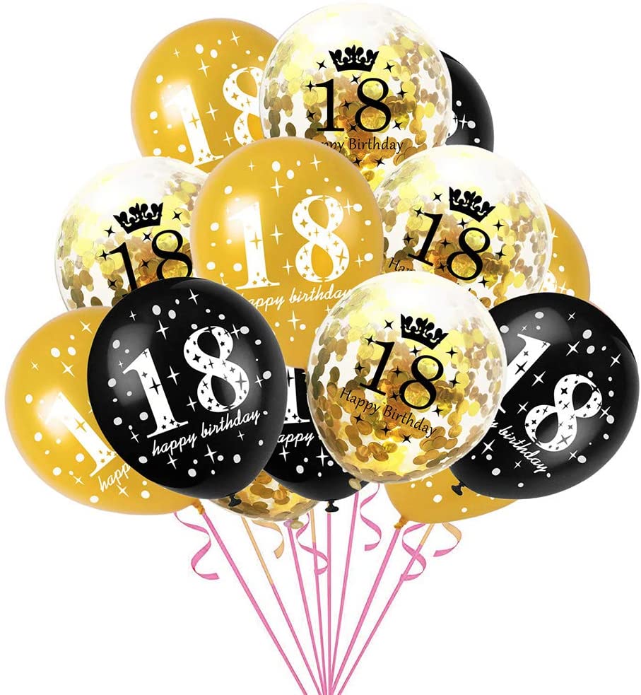 15 Packs Confetti Balloons 12 Inch Latex Clear Birthday Balloons (18 years old) - With Helium