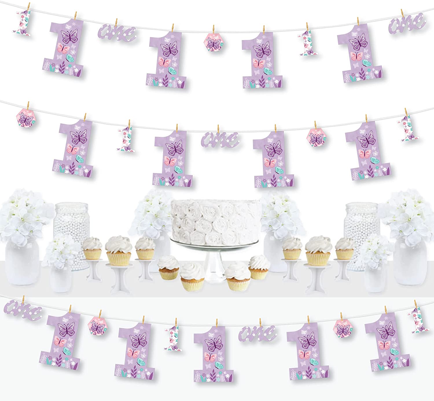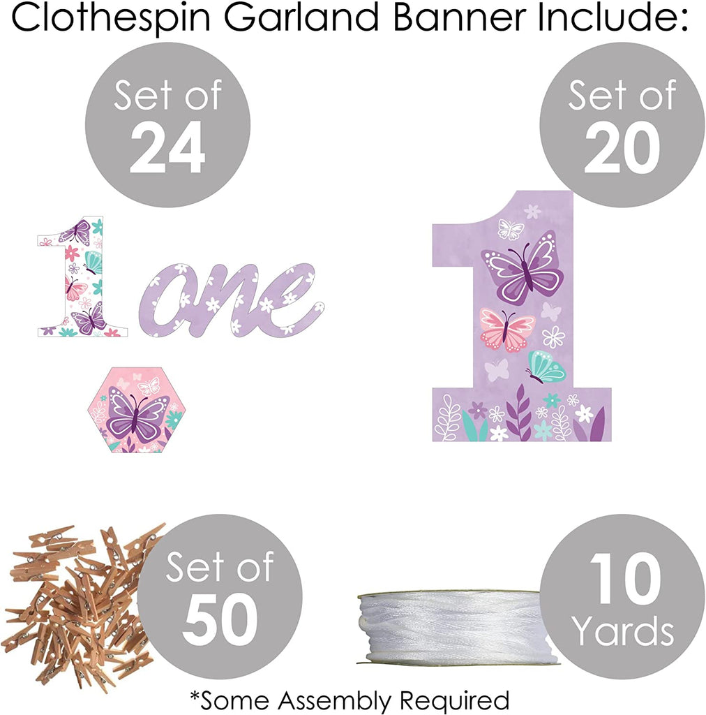1st Birthday Beautiful Butterfly - Floral First Birthday Party DIY Decorations - Clothespin Garland Banner - 44 Pieces is backordered and will ship as soon as it is back in stock.