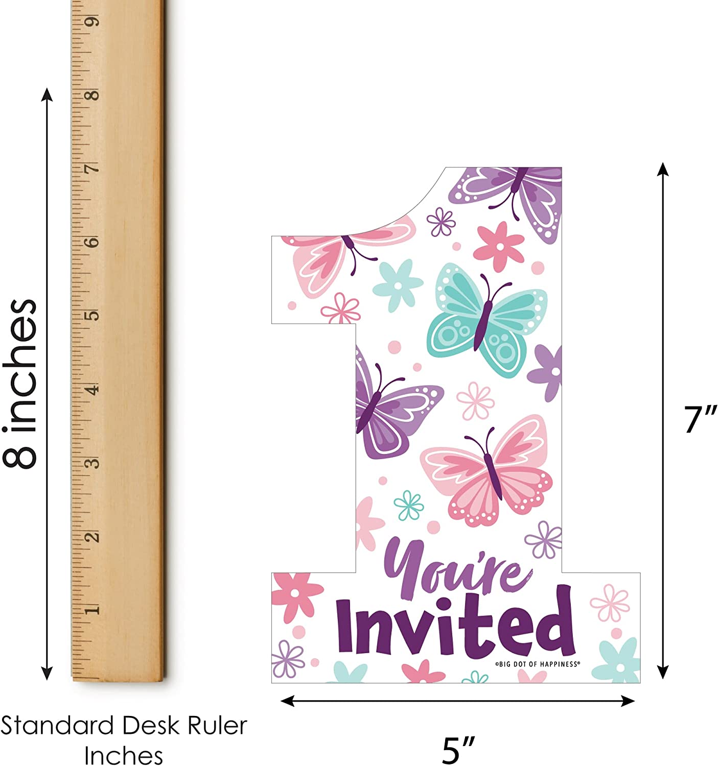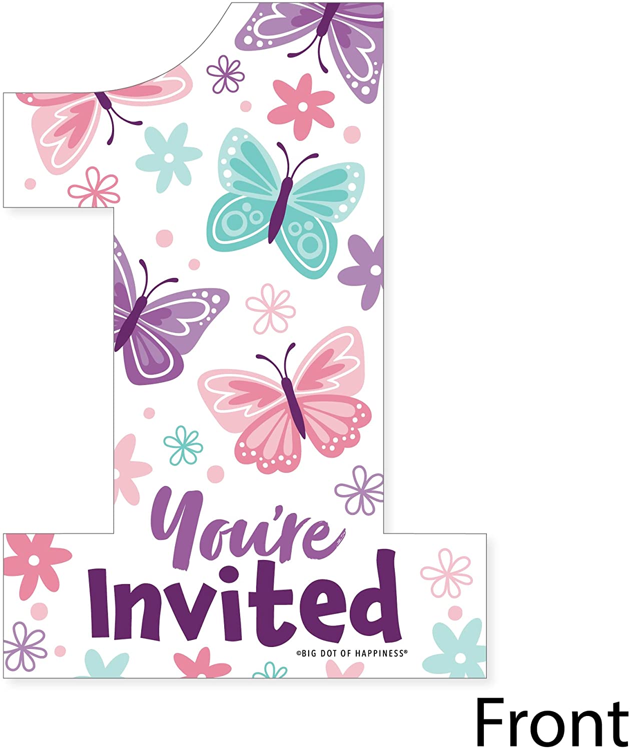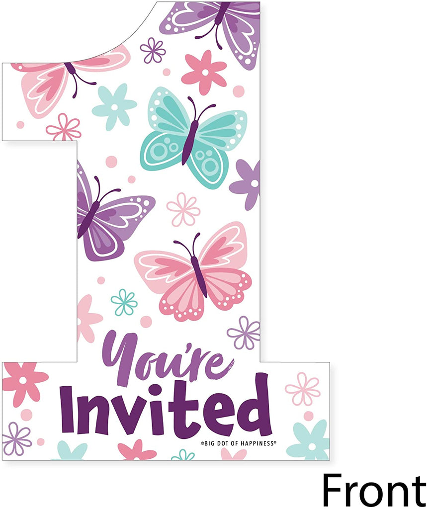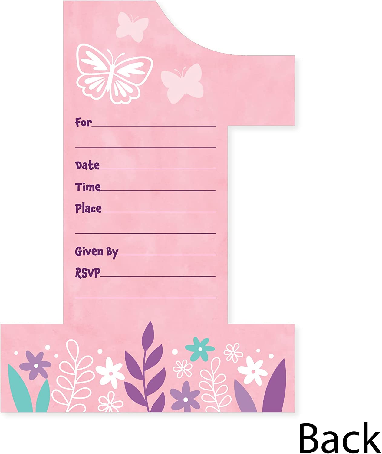 1st Birthday Beautiful Butterfly - Shaped Fill-In Invitations - Floral First Birthday Party Invitation Cards with Envelopes - Set of 12 is backordered and will ship as soon as it is back in stock.