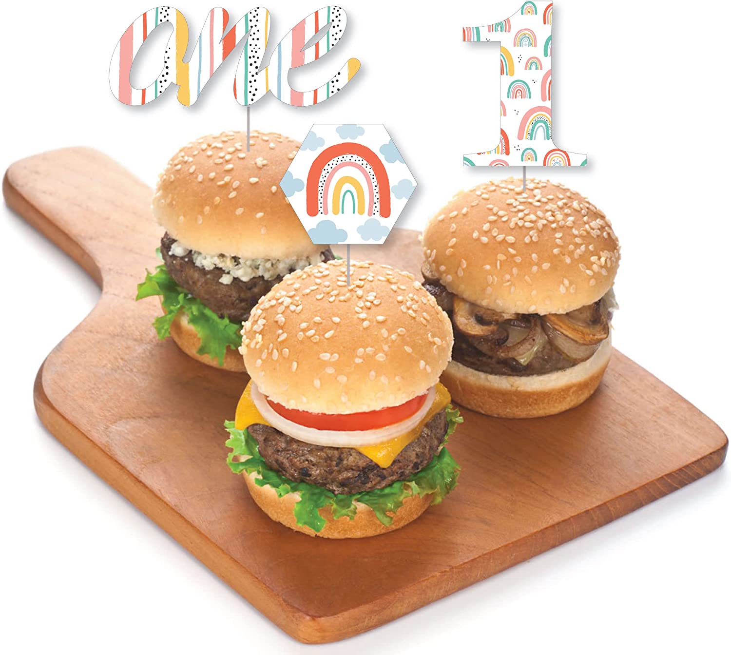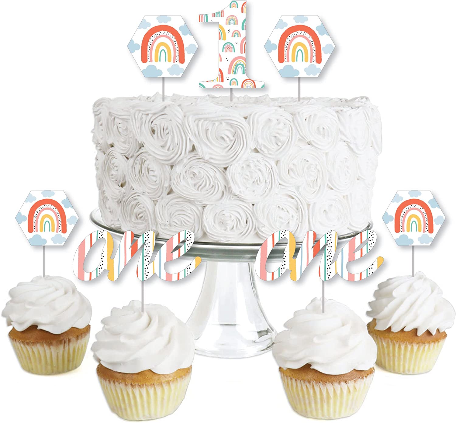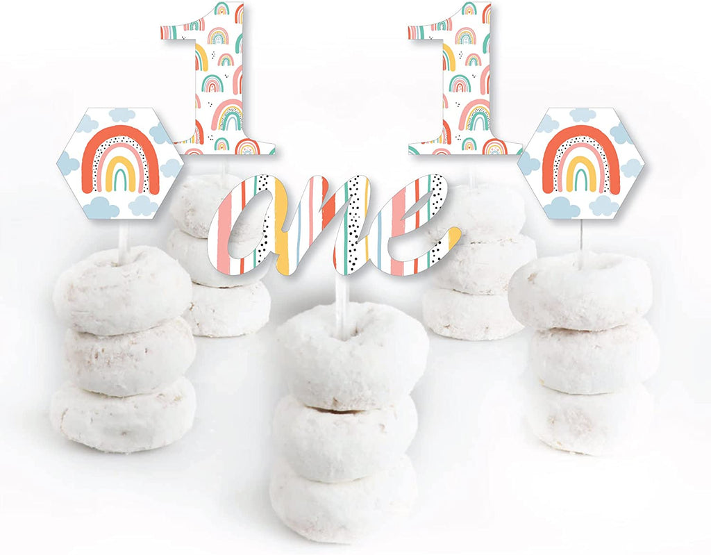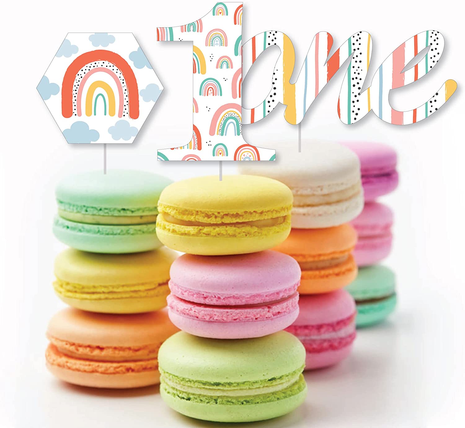 • EASY PARTY DECORATIONS: 1st Birthday Hello Rainbow picks make it easy to style pastel 1st birthday theme party. Create impressive cupcake towers with decorated treats placed on a tiered stand at the candy buffet table, style adorable tables with individual cupcakes at each place setting, or make creative centerpieces using decorated treats and a coordinating treat stand.