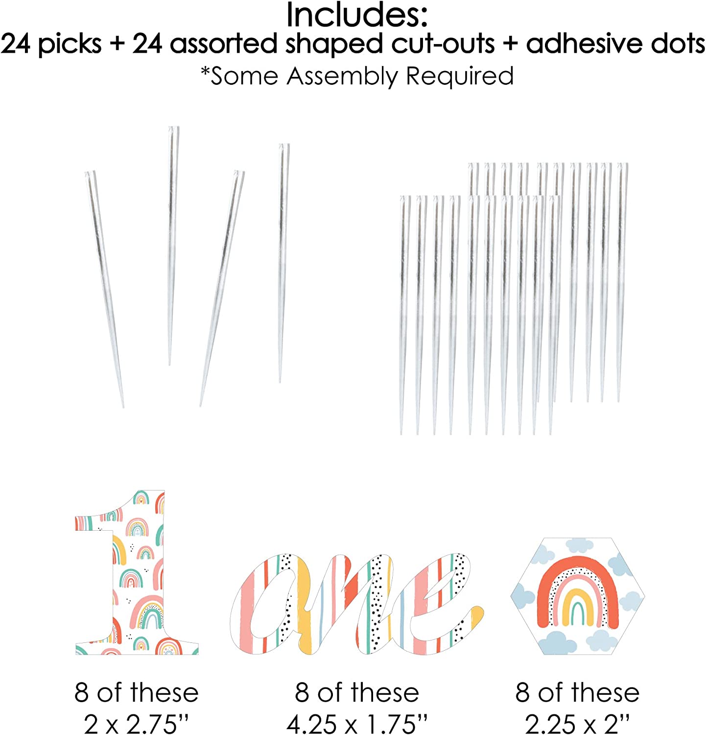 • EASY ASSEMBLY INSTRUCTIONS INCLUDED: Clear treat picks and 1st Birthday Hello Rainbow shaped cutouts will ship with easy assembly instructions to create unique dessert cupcake toppers.
