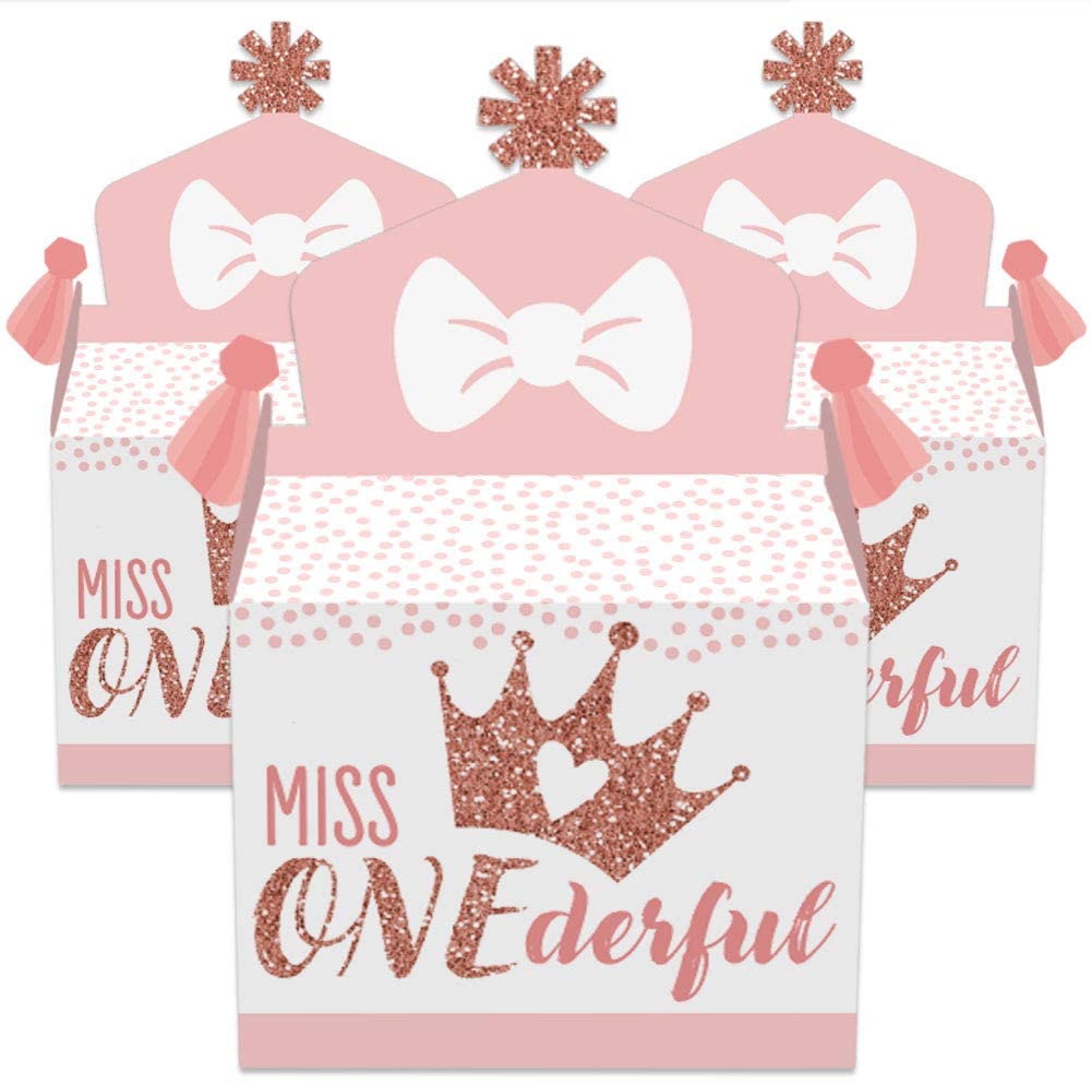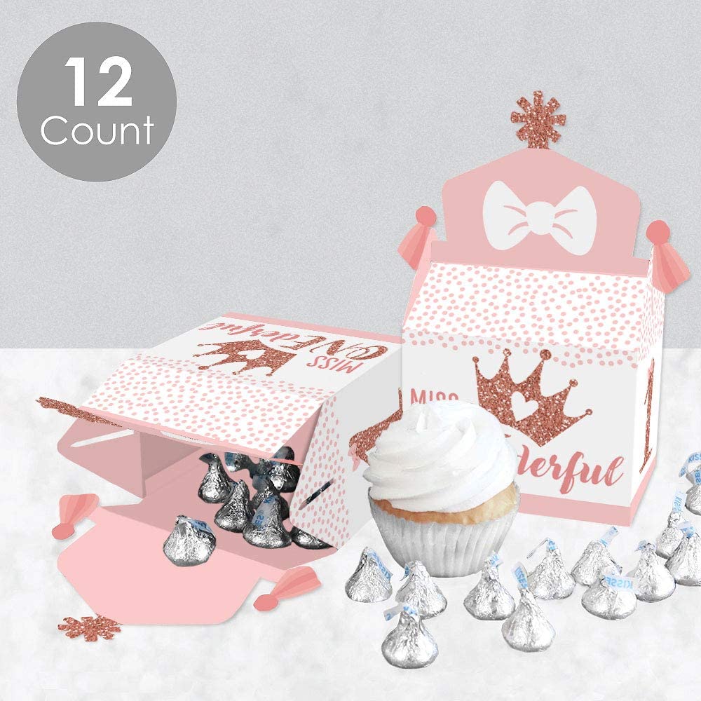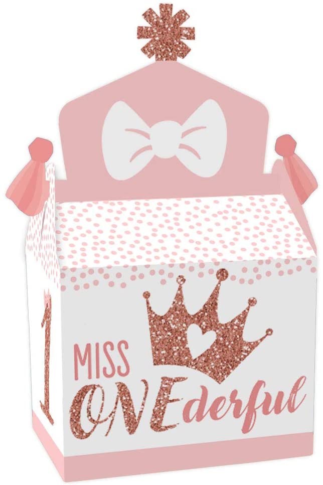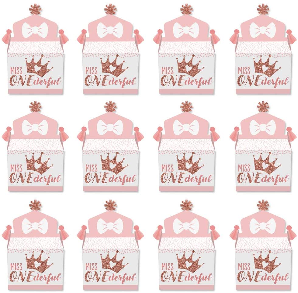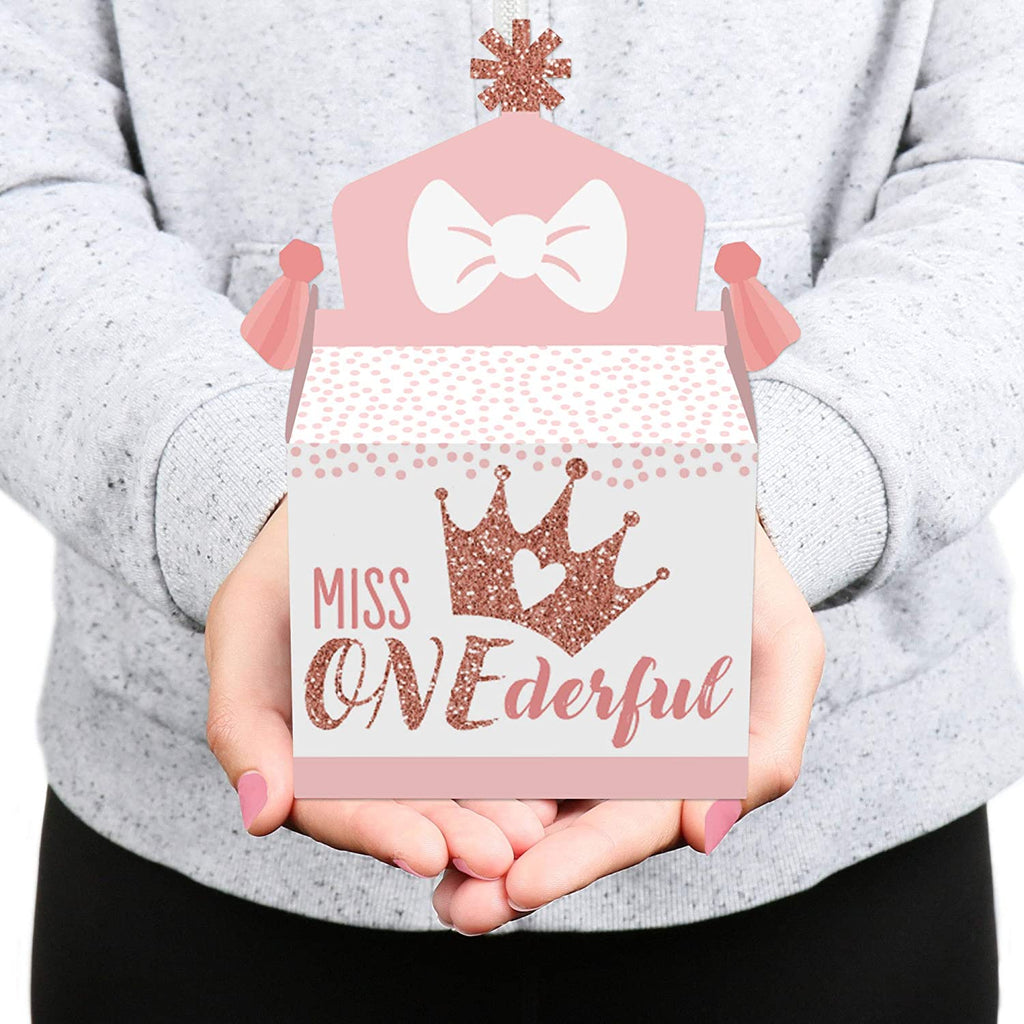 1st Birthday Little Miss Onederful - Treat Box Party Favors - Girl First Birthday Party Goodie Gable Boxes - Set of 12