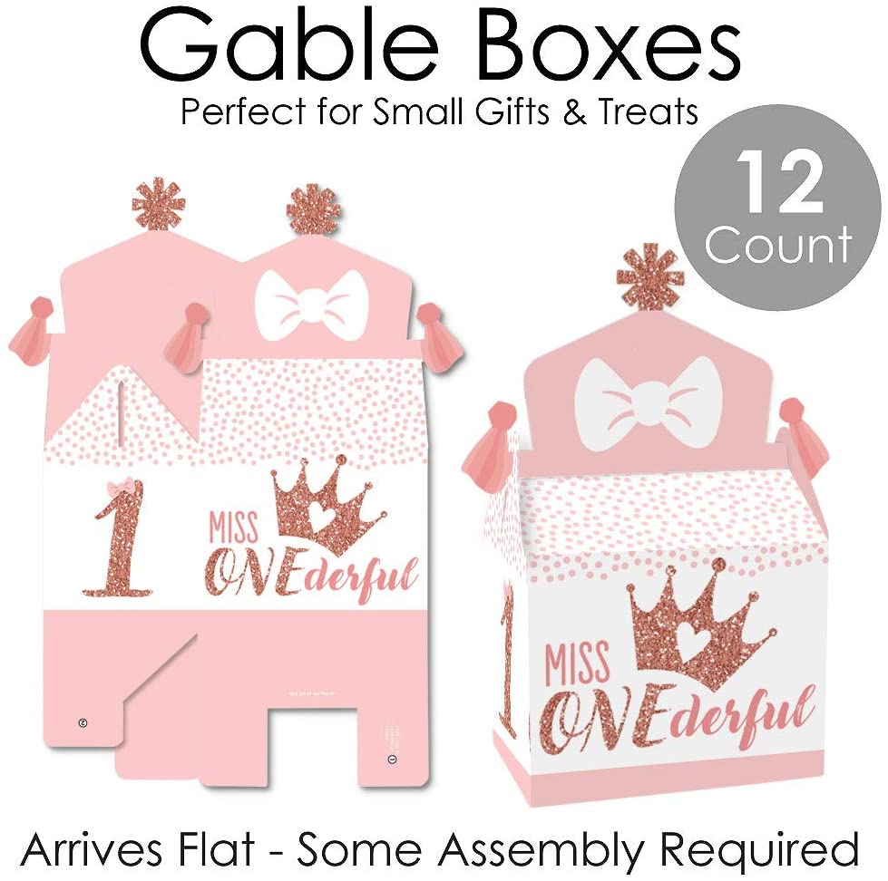 • SIMPLE ASSEMBLY: 1st Birthday Little Miss Onederful gable boxes will arrive flat. Allow time for the required assembly of each box. Gable boxes have crease lines and numbered tabs for easy folding. Packaging will include assembly instructions.