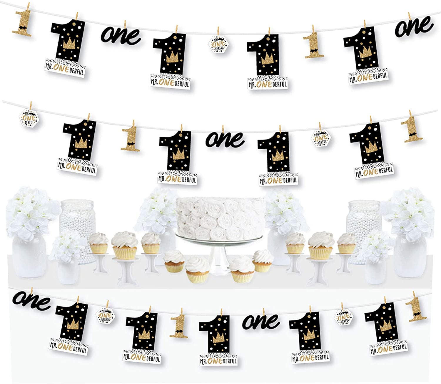 1st Birthday Little Mr. Onederful - Boy First Birthday Party DIY Decorations - Clothespin Garland Banner - 44 Pieces is backordered and will ship as soon as it is back in stock.